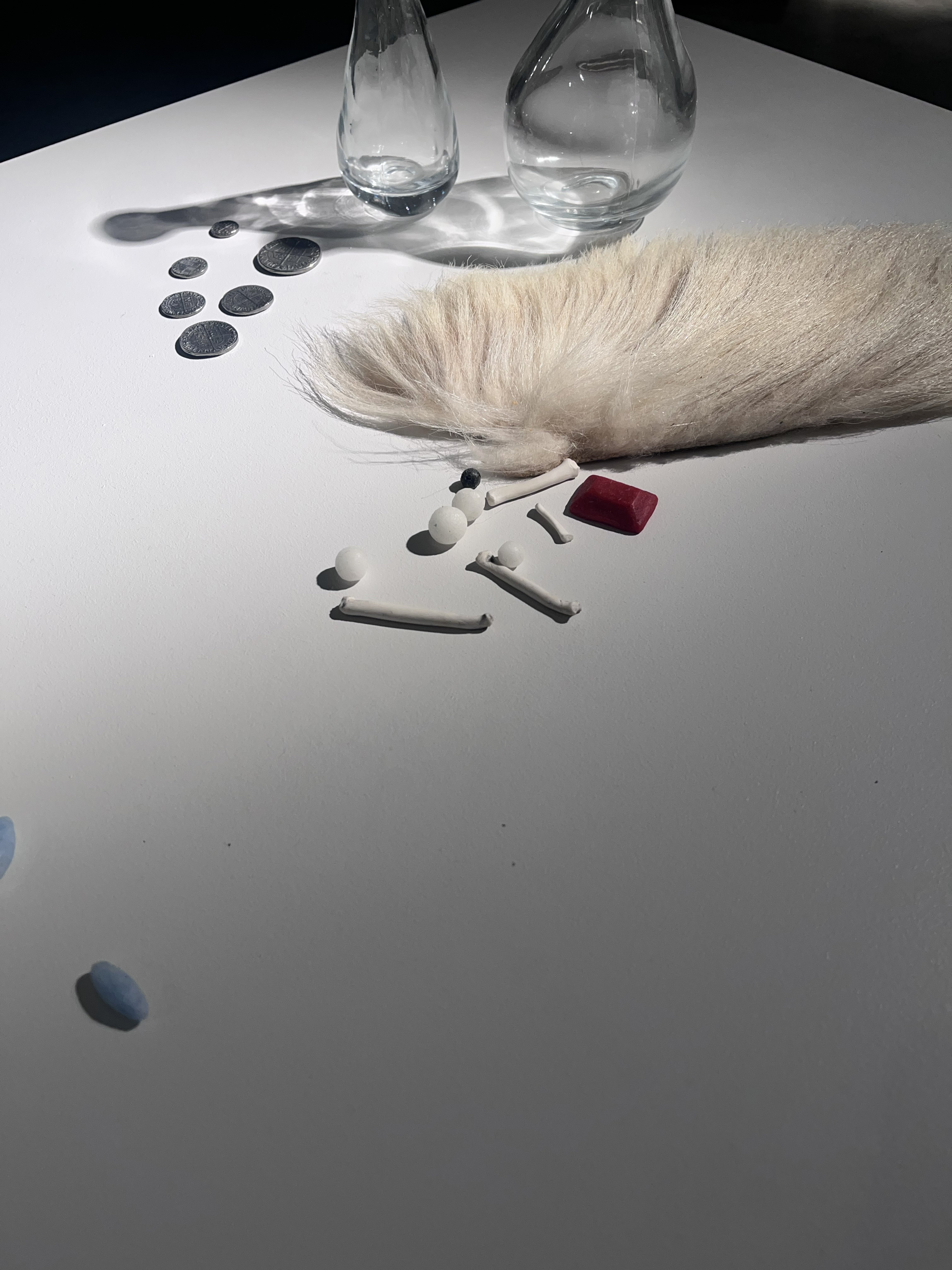 A mixed media installation staging the emergence of the professional actor in the early modern period. The work foregrounds radically new aspects of performance and labour from the 1500s as operational today. Early modern itinerant actors explored the legibility of role and place as a fluctuating assembly of shifting aesthetic surgaces by employing costume and props to shift character and evoke far off locations within the immediate present. Silent Sticks works into these potentials of protean reinvention aligning them with late capitalist ideals of malleability in which all areas of life become performance related.